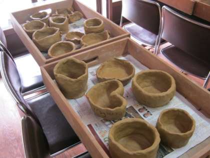 焼き物が完成しました。花背焼きのコップです。はじめは、土台作りで困っている人もいましたが、アドバイスを受けながら見事なコップに仕上がりました。講師をしていただいた方から、「皆さん真剣に作品つくりをされすばらしいコップができました。」とお褒めの言葉をいただきました。