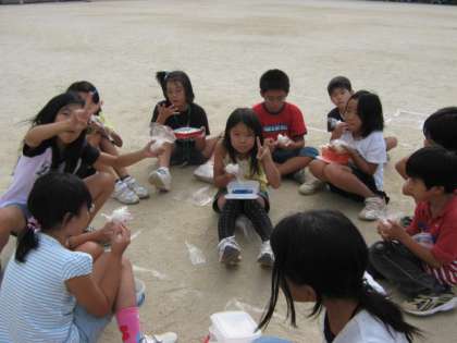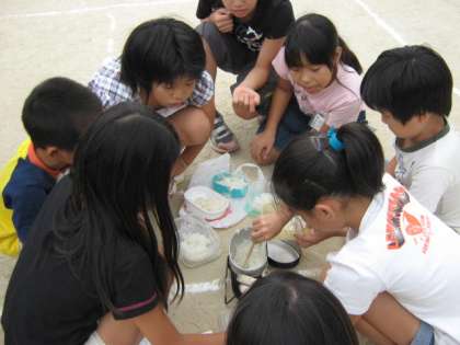 悪戦苦闘の末,おいしい おいしいご飯が炊き上がりました。おこげができた班もありましたが,どの班も上手に炊き上がりました。