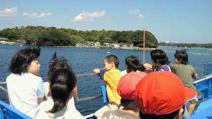 賢島から船に乗って、なかよし港へ。船酔いする人もなく、みんな船の旅を楽しんでいました。潮の香りを感じながら、みんな笑顔で到着です!