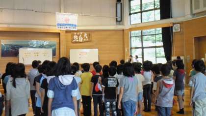 入所式では大きな声で校歌を歌い、頑張って作った旗をあげました。「時間を守ること・協力してやりとげること・自分で考えて活動すること」、この3つのことを誓い、いよいよ活動開始!