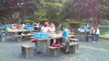 係に分かれて、協力してカレーを作りました。練習の成果が発揮できたようで、真っ白なご飯が!成功した班が多かったようです。熱い熱い火に立ち向かいながらグツグツ煮込んだカレーも最高でした。