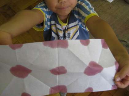 アサガオのきれいな色で染紙ができたときの嬉しそうな顔がとてもすてきです。