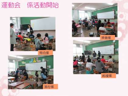 高学年の子どもたちは,それ以外にも運動会がスムーズに進むように,また「赤」「白」に分かれてチーム一丸となって応援できるように多くの係に分かれて活動をします。今日はそのうちあわせの日でした。