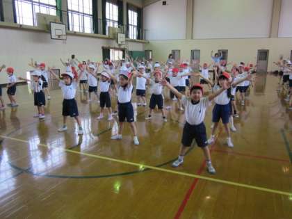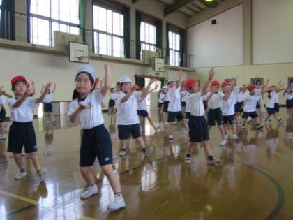 大きく踊ろうと,手の先までぴんと伸ばして踊っています。最後には,2年生に踊りを見てもらいました。大きな拍手をもらって,これからの練習の励みになったようです。