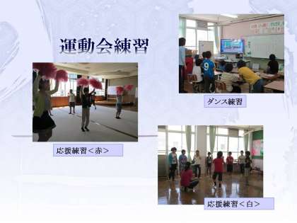 休み時間には「赤」「白」に分かれて応援練習をしたり,みんなで踊る全校ダンスの練習をしたりしています。
