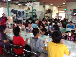 5分程一生懸命容器を振って美味しいバターが出来ました。クラッカーと一緒にいただきました。その後、チーズ作りの実演もしていただきました。