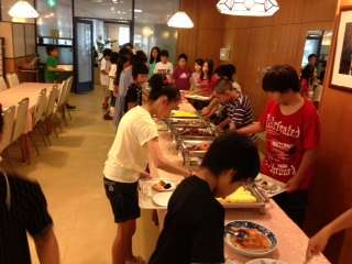 朝食は、バイキングです。栄養のバランスに気をつけながらしっかりととっていました。