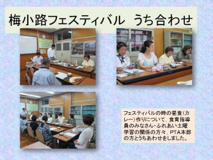 PTAの皆さん・食育指導員の皆さん・ふれあい土曜学習推進協議会で関係している皆さんにお集まりいただいて,梅小路フェスティバルの昼食づくりについて打ち合わせをしました。