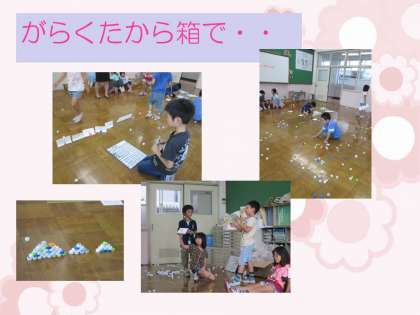 同じキャップでも,グループによって様々な遊び方があり,他のグループのしていることを見ながら遊びはどんどん広がり深まっていきました。