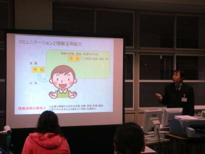 12月9日教育情報化研修会をコンピュータ室で行いました。今年度7回目の教育情報化研修会です。今回は,教頭先生が講師となり「情報教育の指導」について研修をしました。「情報教育とは」「児童の情報活用能力を育成するための指導のポイント」などについて研修テキストやネットワーク上の研修支援システムを使いながら,演習や確認テストなどをしました。明日からの学習に生かしていけるようがんばっています。