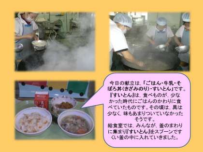 今は,食べものが,豊富にありますが,いろいろな物が食べられることに感謝する機会として取り入れています。