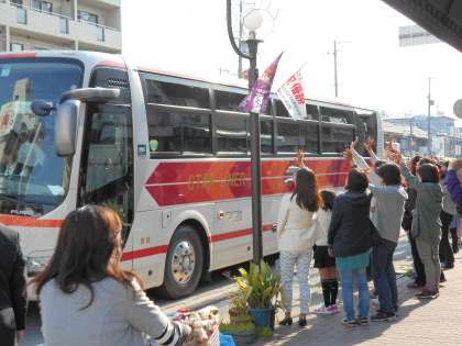 気持ちのよい朝、出発式を行い7時44分に保護者のみなさんや教職員に見送られ、無事に出発しました。