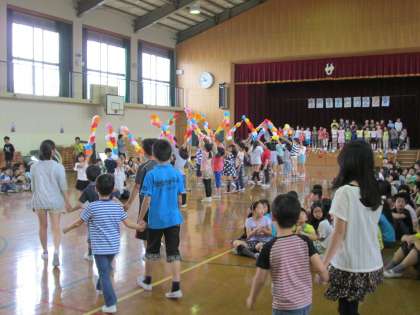各学年から,歓迎の歌(替え歌),合奏,簡単な歌遊びもありました。そして,6年生は楽しいダンス。