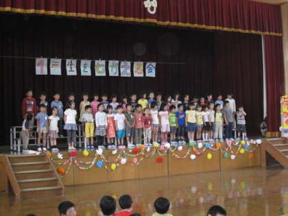 1年生が入学して1カ月がたちました。入学をお祝いして,1年生を迎える会を開きました。計画委員会では,4月の委員会の時に話し合いをして,どんな会にするか出し物や役割を決めて,準備をしてきました。