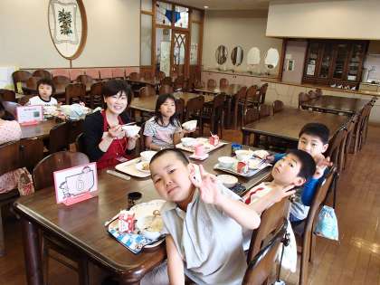 栄養教諭の船田先生から「ランチルームの使い方やランチルームにある物」についてお話をしていただきました。きれいなランチルームでの給食は,いつもと違う気分でみんな嬉しいようで,おいしく給食を食べました。