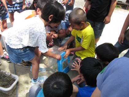 子どもたちは,虫かごの中の全部のさなぎが蝶になり,ひらひらと飛んでいるのを見て,朝から目を輝かせていました。