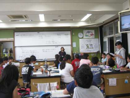 写真は,その子のノートの良いところをテレビに映して共有している場面です。