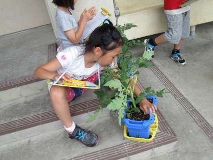 この学びを生活科の学習でも生かし,トマトの苗の観察をしました。