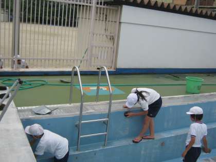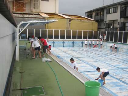 6年生は今年が最後の水泳学習です。自分たち,そして,全校のみんなが気持ち良く泳げるようにていねいに掃除をしました。