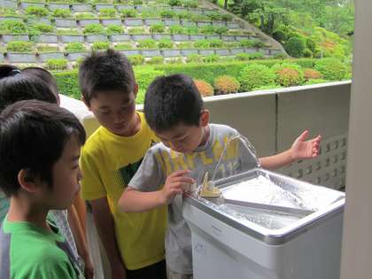 また,出来上がったばかりの水を飲ませてもらって,「おいしい。」「家の水(水道水)と違う気がする。」とおいしそうに飲んでいました。
