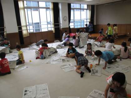 新聞しやチラシなどの大きな紙をちぎったり,丸めたり,つなげたりする活動を