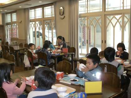 2年2組がランチルームで給食を食べました。今日の給食は,「ごはん・みそ鍋・ひじきの煮つけ・牛乳」でした(「豆乳鍋」を「みそ鍋」に変更)。食べ終わってから,クイズ「私は誰でしょう?」をしました。『のりやごぼう』が少し難しかったようで,色々なヒントを出してもらい,正解することができました。