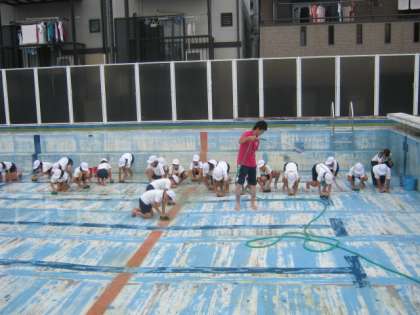 11日(水)にプール掃除をしました。5年生は4時間目にプールの周りや中を磨きました。壁や床を丁寧に磨き,来週から始まる水遊びにむけての準備をしました。全校のためにする行事に子どもたちの力も入ります。1時間真剣に取り組み,がんばる姿が見られました。水泳学習も頑張ってほしいです。