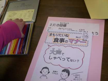 月1回程ある,委員会活動の紹介です。給食委員会では,梅っ子集会や給食集会の準備や練習をしたり,普段は,栄養黒板を記入したりもしています。今月は,2月の給食目標「楽しい給食目標を工夫しよう」のポスターを作成しました。ランチルームで行っている「私はだれでしょう?」も行い,食品の3色分けの確認もしました。