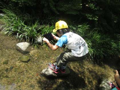 川ではアメンボやザリガニを,草むらでバッタや蝶を見つけ,一生懸命に撮影していました。また,集合してからは,自分たちで見つけた生き物を,嬉しそうに友達に見せていました。