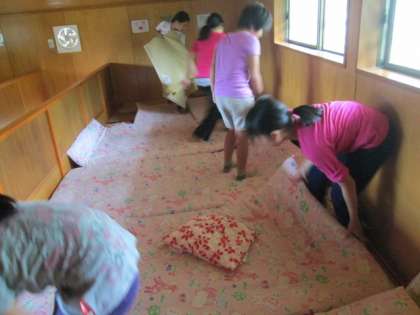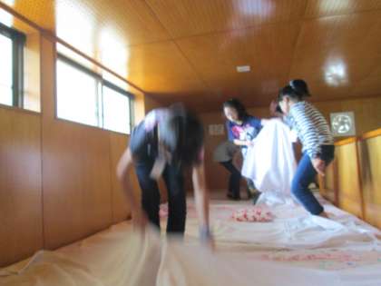 教えていただいたことをもとに,しっかり自分の手で寝具準備をしました。