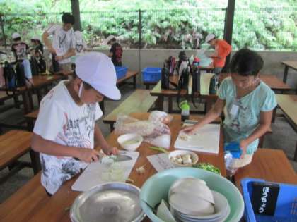 野外炊事です。