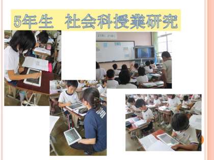 社会科の資料をしっかりと読み取り,それらを関連付けてさらに考えていく授業です。読み取ったものをタブレットを使ってまとめ交流していきました。