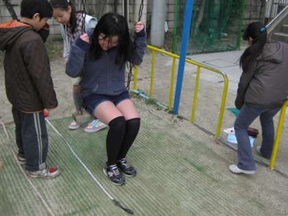 今日は,校庭のブランコを使って,検証です。
