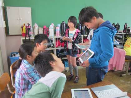 10月9日(木),「みさきの家」野外宿泊学習の活動を伝えるシナリオもできあがってきました。この日はグループでお互いに発表を聞き合って,アドバイスをしました。いちばん伝えたいことは何か,写真はこれでいいか,話すときは写真を指さしながら等々チェックポイントがたくさん。修正を加えつつ練習をしました。