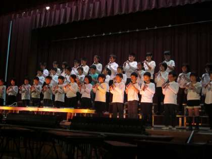12日(水)学習発表会を明日に控えてのリハーサルです。本番と同じように体育館で通します。衣装もつけて,リハーサルとはいえ,朝から少し緊張気味の子どもたちです。1年生の子どもたちが前で見てくれて拍手をしてくれました。