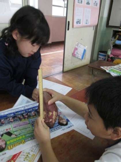 教室に戻って観察記録を書きました。手で持ってみて重さを確かめたり,定規を使って長さを測ったり,大きさを表す工夫をしていました。