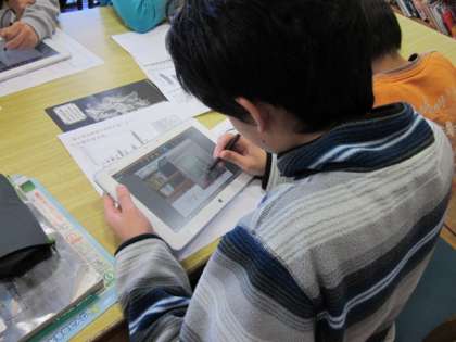 国語の学習で,「図書館改造」提案を作成します。今日は,梅小路小学校の図書室の現状を調べました。工夫されている点や,もっとこうしたらよい点などをタブレットで写真を撮り,友達と交流をしました。4月から今までの利用状況から読みとった課題や,図書の先生からのお話なども参考に,もっとよりよい図書室になるよう,提案文につなげていきたいと思います。