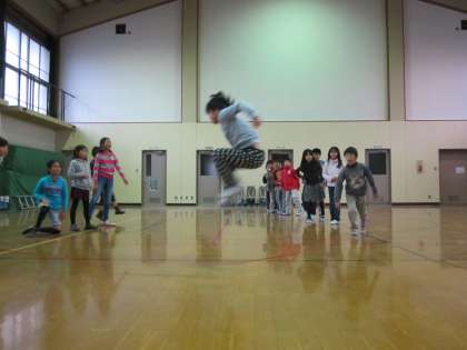 もうすぐ行われる『大なわ大会』。今日初めて練習をしました。5分間で何人が跳べるかを競います。A,B2チームに分かれて練習したのですが,今日の最高記録は132回でした。目標は200回。ただし合格ラインは150回と決めた子ども達です。