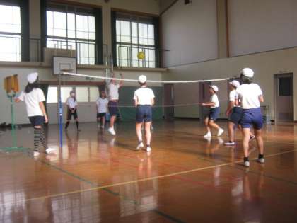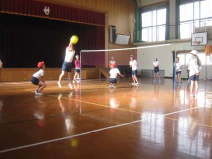 レシーブ→トス→アタックの形を意識して,少しずつでき始めているグループもあります。みんなで声を出し合って楽しんでいます。