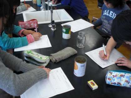 次回は,空き缶の中で割りばしを燃やしてみようと思っています。缶に空気の通る穴を開けたいなという声が聞こえてきました。