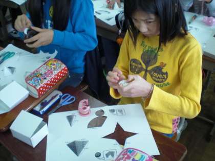 それぞれ,描きあがった図形を切り取って,立体を作ることができました。