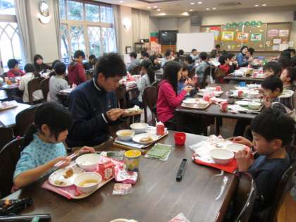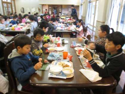 給食週間の一環として5年2組のお兄さん,お姉さんたちと交流給食でした。