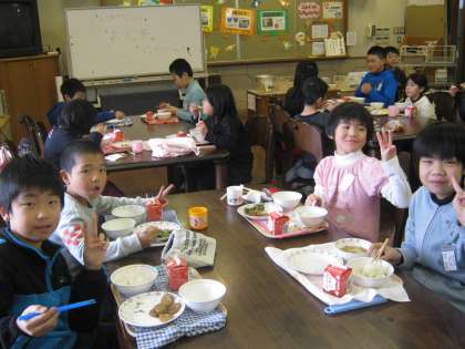 1年1組は,5年1組と交流給食をしました。ランチルームで,5年生とお話をしながら給食を食べました。5年生が「今,算数はなんの勉強しているの?」「好きなキャラクターはなに?」などと声をかけてくれました。なかなか関わる機会の少ない5年生と交流できて,嬉しかったようです。1年2組は,9日(月)に4年1組と交流給食です。楽しみですね!