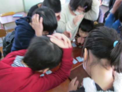 今日は,中学年の予選がありました。中学年は40枚を覚え,競います。上の句が読まれると,真剣な表情で取り札をさがしていました。今までの練習の成果があってか,パンとかるたをとる音がはやくなっているように感じました。