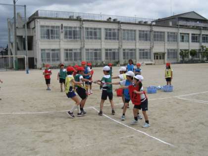 3年生では,体育でリレーの学習をしています。同じチームの仲間とうまくバトンをつないで走る工夫をしています。どうすれば上手に走れるか?みんなで考えてがんばっています。