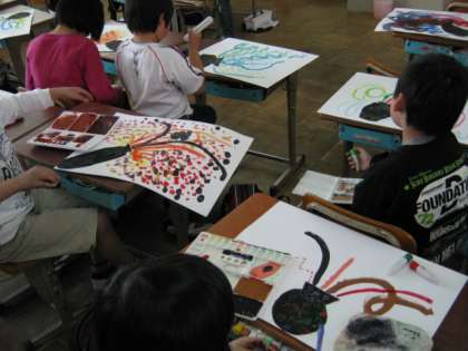 不思議なつぼから何が出てくる?一人一人が作った不思議なつぼ。中から何が出てくるかな?一人一人がおもいおもいに想像を膨らませ,今回は線や模様を描きました。どんなものが出てくるか出来上がりが楽しみです。