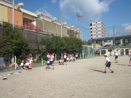 その後,バットとやわらかいボールを使って練習をしました。なかなかバットにボールが当たらず,空振りをする子もいましたが,何度かするうちにバットを振るタイミングもつかめてきたようです。次回からは,ゲーム形式の試合もしていきたいと思います。