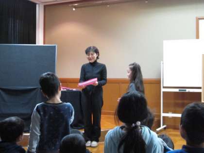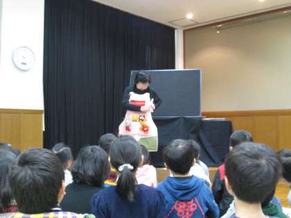 大型絵本やエプロンシアター,牛乳パックシアターを楽しみました。みんなお話の中に入り込んでいました。そして,最後は1年生の要望に応えてもらい,怖いお話をしていただきました。大満足の「ロングミッフィータイム」になりました。