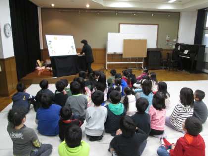 パネルシアターにエプロンシアター,パックシアターにビックブックの読聞かせなど豪華な内容です。ピアノの演奏がついていたり,先生の扮装があったりととても工夫していただき,とってもとっても楽しい時間を過ごすことができました。