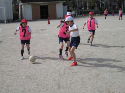 全部で6回続いてきた体育「ボールけりゲーム」がいよいよ最終戦をむかえました。